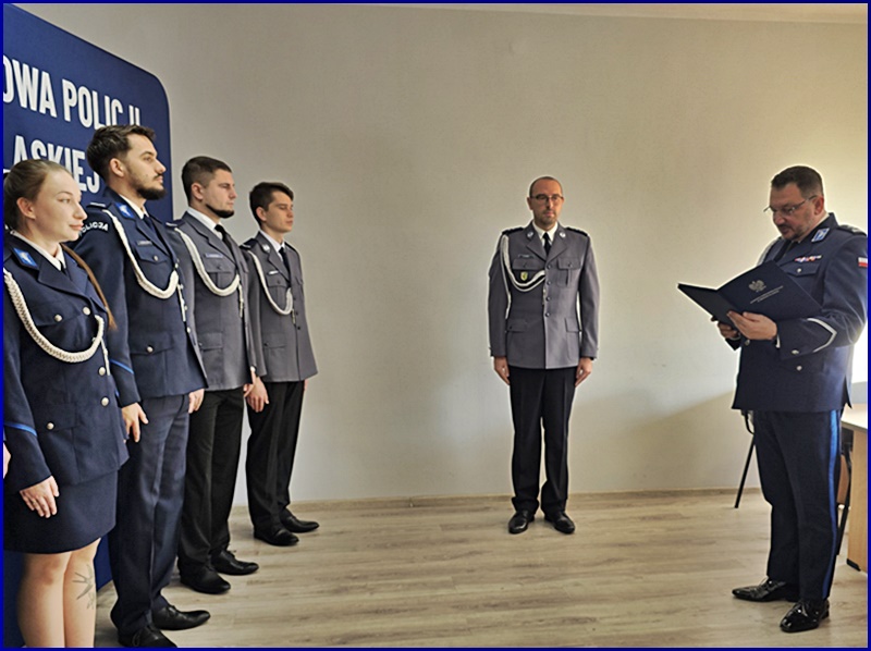 Podczas uroczystości Komendant Powiatowy Policji w Środzie Śląskiej mł. insp. Artur Dobrowolski osobiście wręczył akty mianowania oraz pogratulował awansowanym funkcjonariuszom, podkreślając ich zaangażowanie, profesjonalizm oraz wzorową postawę w codziennej służbie.