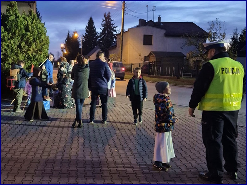 Ze względu na to, że pochód odbywał się tuż po zmroku, funkcjonariusze zwracali szczególną uwagę na widoczność uczestników i bezpieczeństwo na przejściach dla pieszych. Dzieci i opiekunowie wyposażeni byli w elementy odblaskowe, a policjanci przypominali o zasadach bezpiecznego poruszania się po drodze po zmroku.