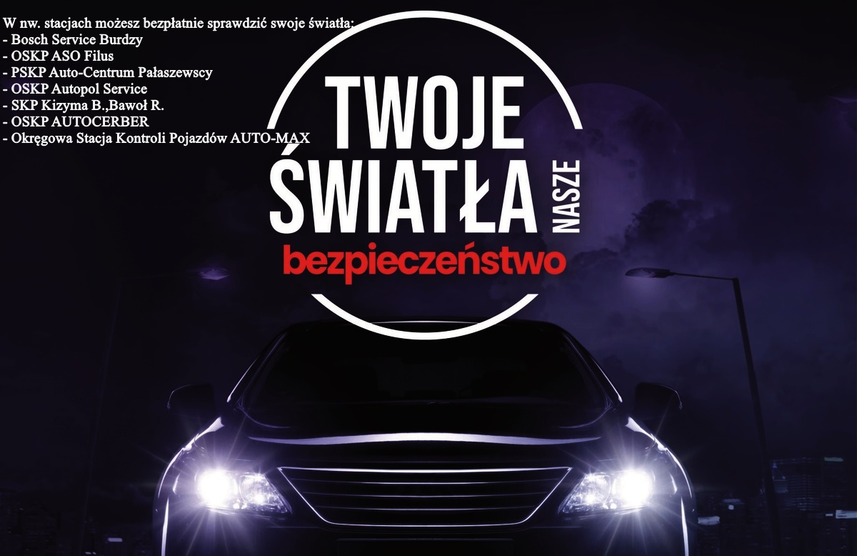 W ramach akcji „Twoje światła – nasze bezpieczeństwo” kierowcy mogą za darmo, w wyznaczonych dniach, dokonać sprawdzenia, ustawienia i regulacji świateł na stacjach kontroli pojazdów, które przystąpiły do akcji.