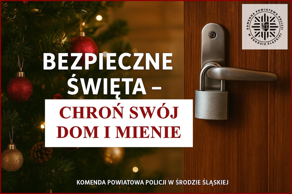 Święta Bożego Narodzenia to czas wyjazdów do rodziny i znajomych. Niestety, jest to również okres wzmożonej aktywności przestępców, którzy wykorzystują chwilową nieobecność mieszkańców, aby dokonać kradzieży lub włamań. Komenda Powiatowa Policji w Środzie Śląskiej przypomina o podstawowych zasadach bezpieczeństwa, które pomogą chronić dom, mieszkanie oraz pojazdy.