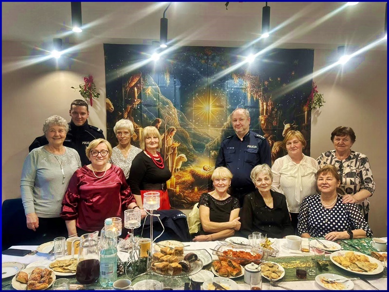 Wigilijne spotkanie miało szczególny charakter – nie tylko sprzyjało kultywowaniu tradycji i integracji międzypokoleniowej, ale również stworzyło przestrzeń do rozmów na temat bezpieczeństwa w codziennym życiu. Takie bezpośrednie, nieformalne spotkania są doskonałą okazją do wymiany doświadczeń, zadawania pytań oraz wzmacniania wzajemnego zaufania pomiędzy Policją a lokalną społecznością.