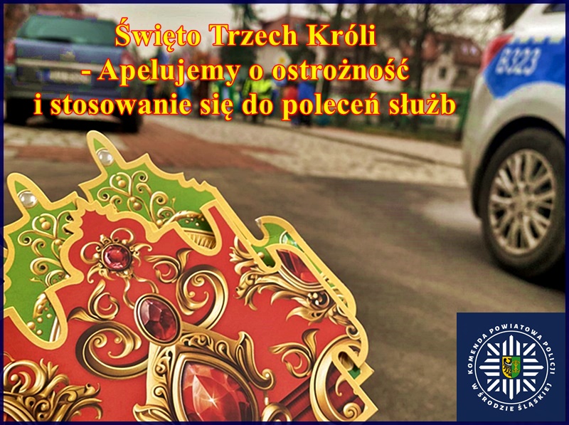 W związku z przypadającym jutro Świętem Trzech Króli, funkcjonariusze Komendy Powiatowej Policji w Środzie Śląskiej apelują do mieszkańców oraz wszystkich osób uczestniczących w uroczystościach na terenie powiatu średzkiego o zachowanie szczególnej ostrożności oraz odpowiedzialne zachowanie.