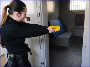Druga część szkolenia skupiała się na doskonaleniu umiejętności praktycznych. Funkcjonariusze ćwiczyli prawidłowe posługiwanie się urządzeniem, zasady jego noszenia oraz taktykę użycia w różnych sytuacjach służbowych. Szczególny nacisk położono na skuteczność działania oraz właściwą ocenę zagrożenia.
