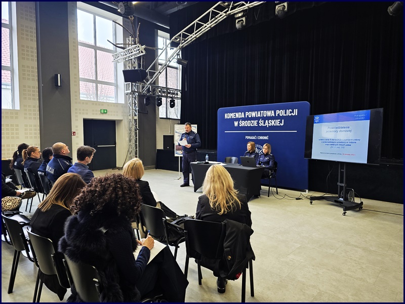 31 marca 2026 roku w Powiatowym Centrum Kultury Alternatywnej w Środzie Śląskiej odbyło się spotkanie pn. „Razem przeciw przemocy – skuteczna współpraca służb i instytucji w systemie przeciwdziałania przemocy domowej”, zorganizowane przez Komendę Powiatową Policji w Środzie Śląskiej. Wydarzenie poświęcone było wzmocnieniu współpracy międzyinstytucjonalnej, doskonaleniu procedur reagowania oraz podniesieniu skuteczności działań na rzecz osób dotkniętych przemocą domową.